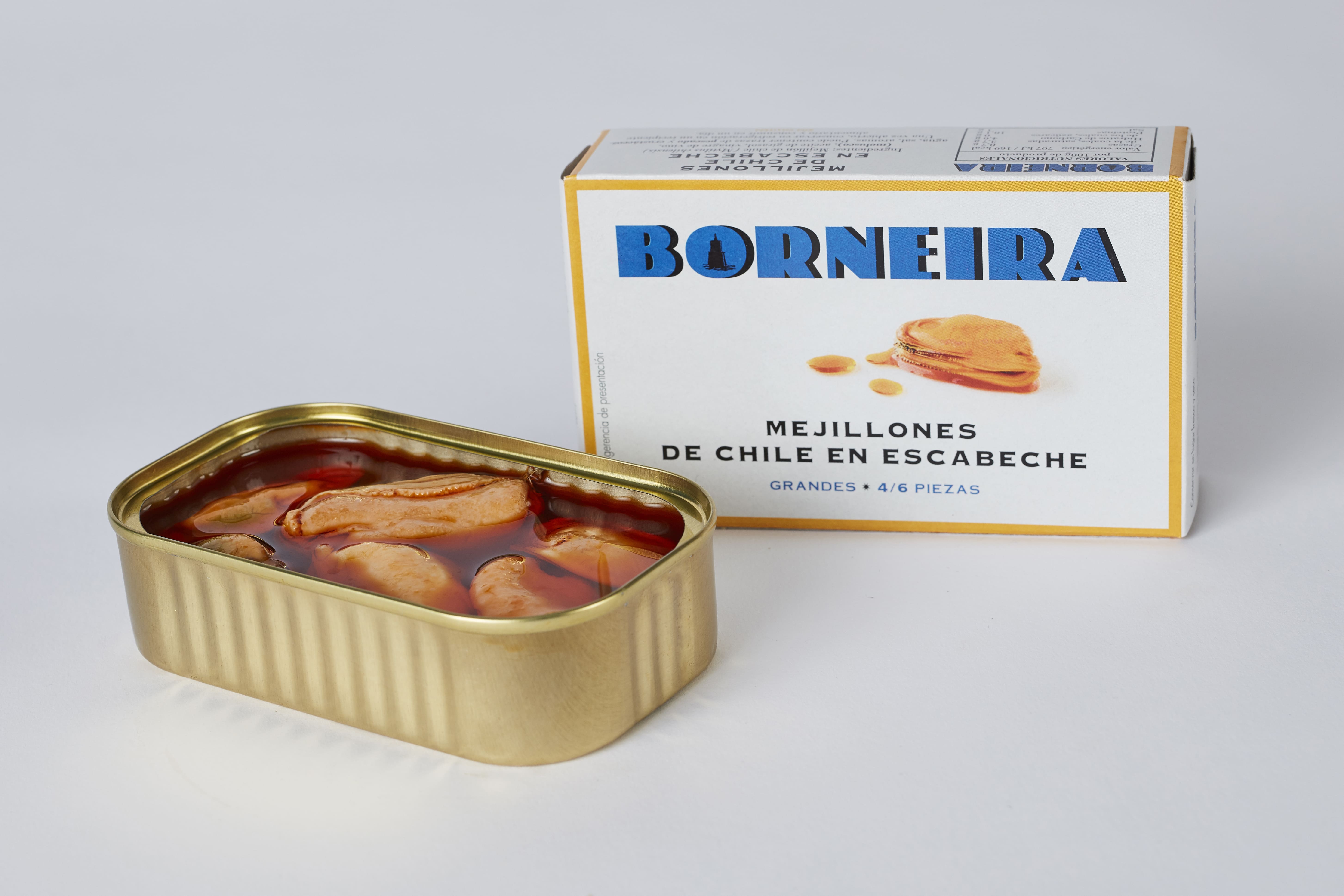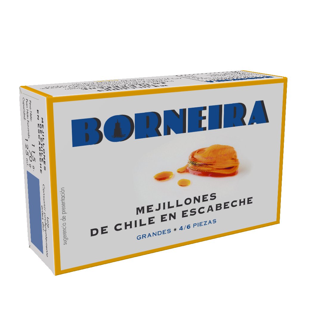 Mexillóns de Chile grandes cubertos por un delicioso escabeche.